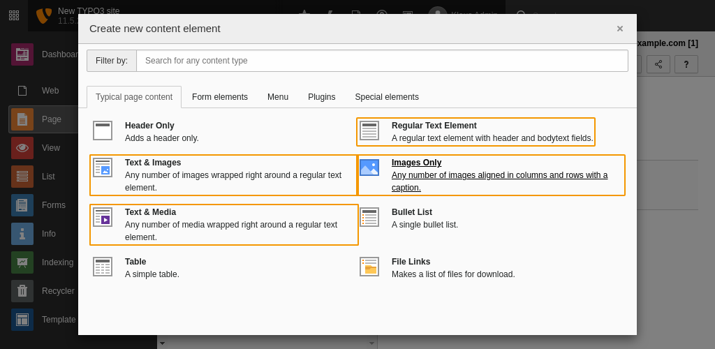 This content element allows you to combine text and images. Additionally there is also a content element for Text & Media where you can use videos or Audio. There are also separate content elements for Text or Images individually. These offer no advantage over the content element Text & Images except that some fields are missing and the backend form is less cluttered.