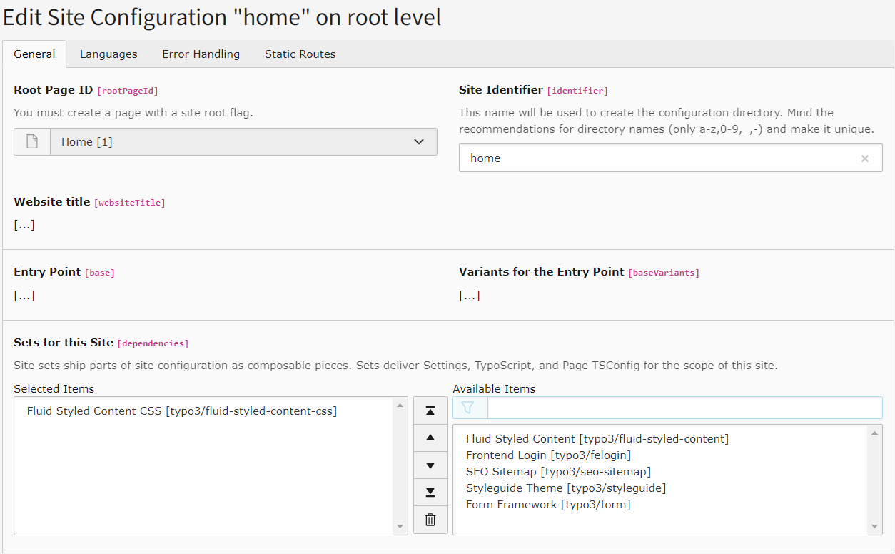 This is the recommended way to include the "Fluid Styled Content" site set into basic TYPO3 sites without a custom site package. See also site sets.