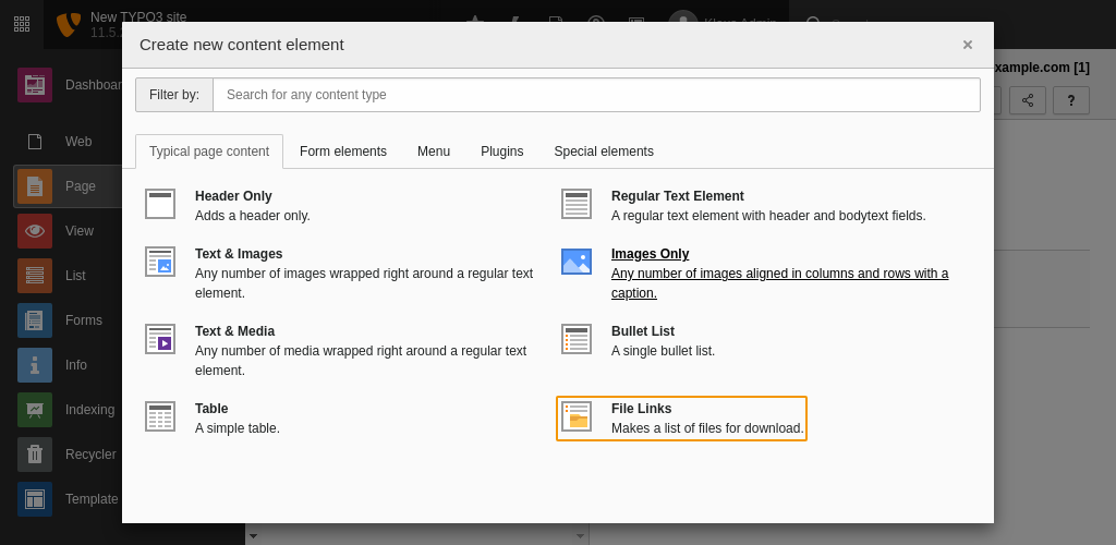 The content element Uploads in the backend
