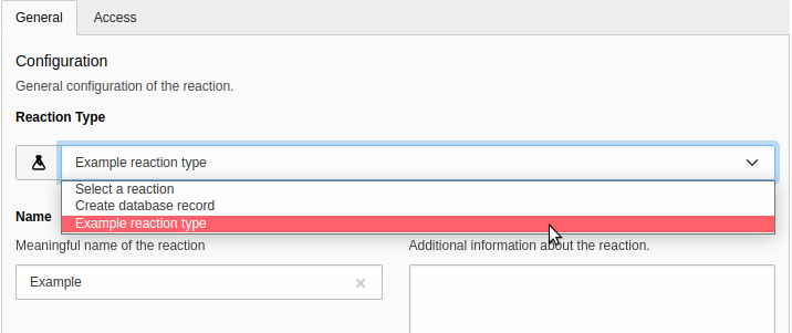 In a next step we add the newly created reaction type to the list of reaction types in the backend: