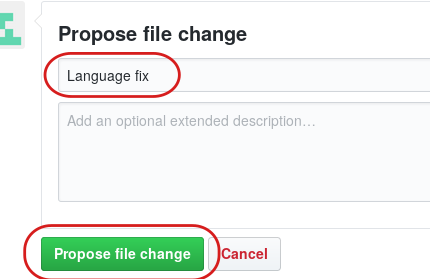 When you are ready, scroll down to the bottom of the page. Add a short (but meaningful) description that outlines the changes you have made and click "Propose file change"