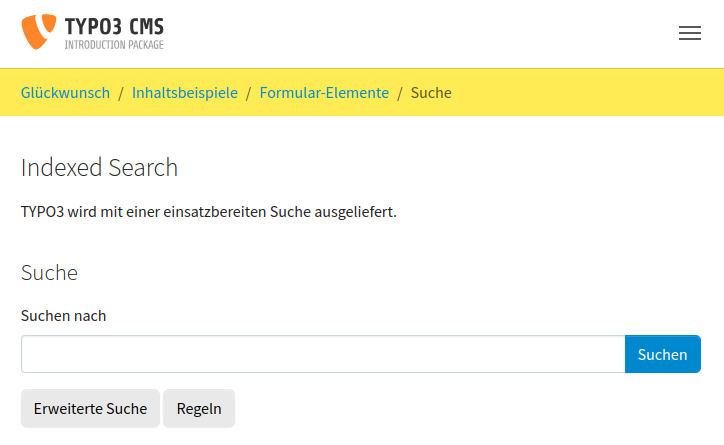 For instance, if the page is accessed in the language "de" and the German translations are installed, you will see this page for "indexed search":