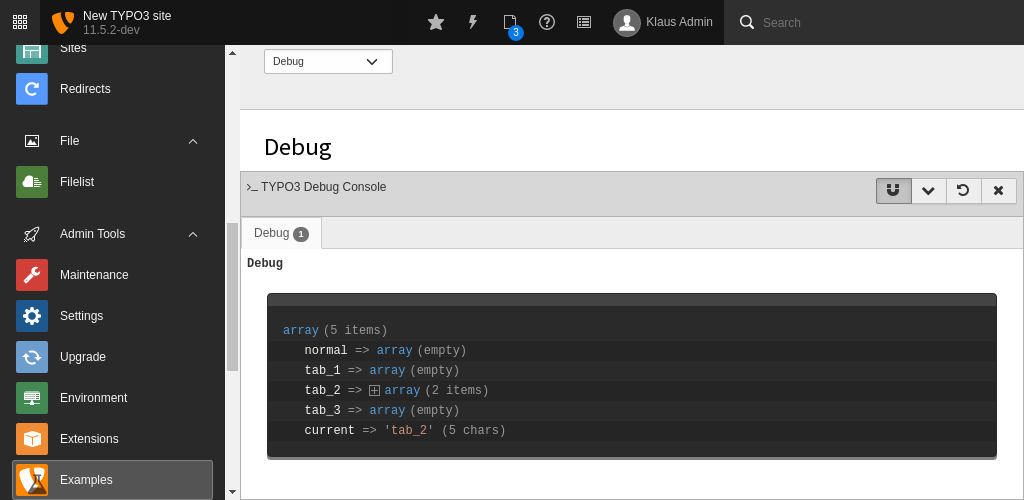 TYPO3 backend debug mode