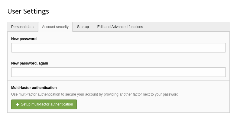 Please read the chapter about secure passwords. If your current TYPO3 password does not match the rules explained above, change your password to a secure one as soon as possible. You should be able to change your password in the User settings menu, reachable by clicking on your user name in the top bar: