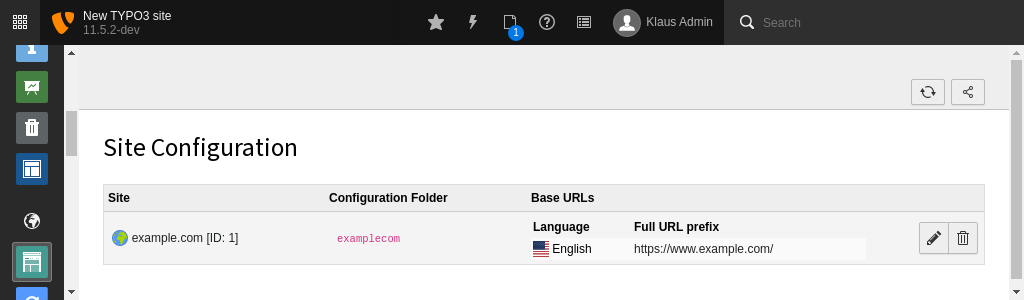 TYPO3 site handling and configuration is the starting point for creating new websites. The corresponding modules are found in the TYPO3 backend in the section Sites.