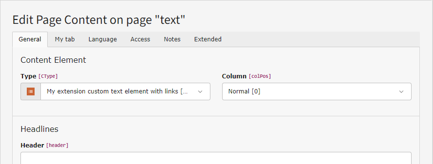 Creating content elements has been simplified by removing the need to define the system fields for each element again and again. This shrinks down a content element's showitem to just the element specific fields. See also Migration. Added with Feature: #104814 - Automatically add system fields to content types.