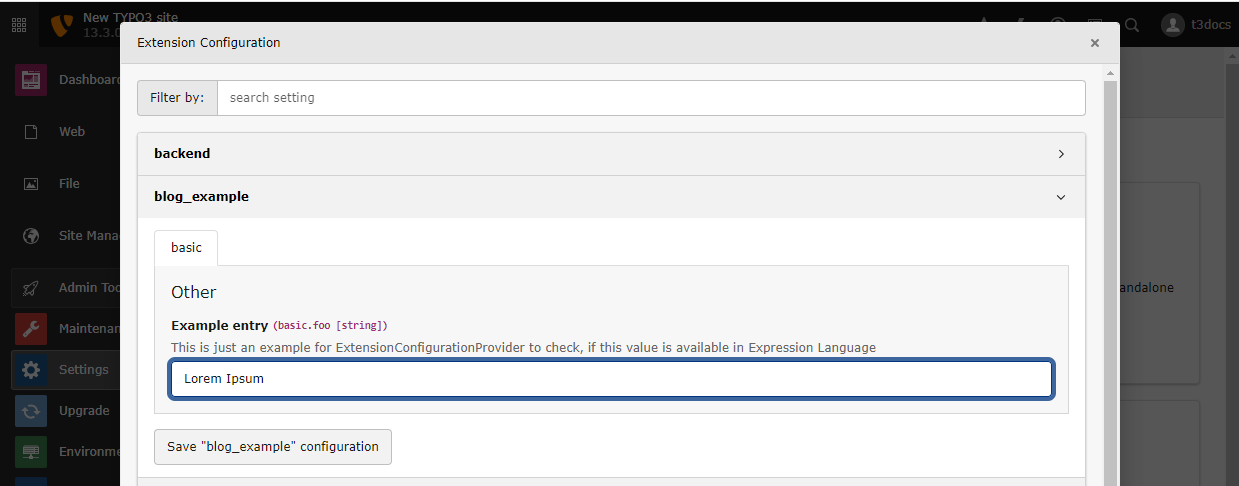 Global settings for installed extensions, including some that are part of a default installation, can be made in the Admin Tools > Settings > Extension Configuration submodule.