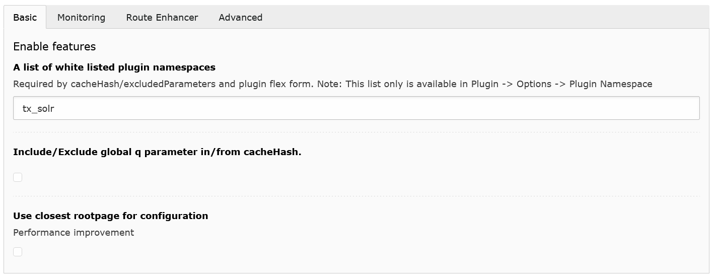 The following settings can be defined in the "Settings":>"Extension Configuration":>"solr"
