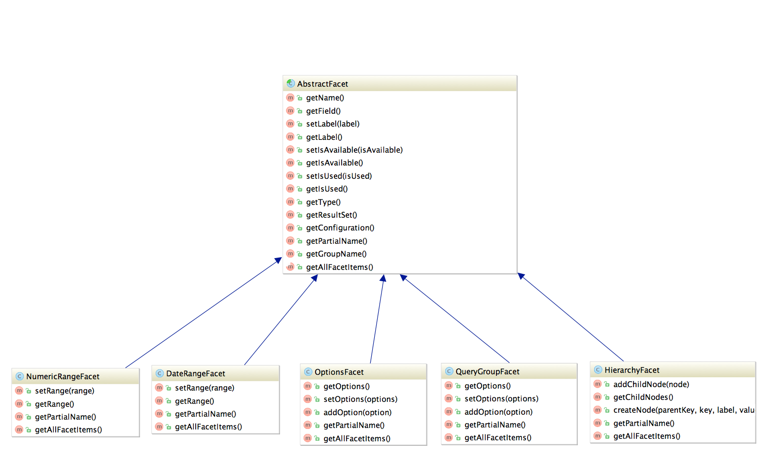 As you see in the diagram above Solr ships a clean object structure of the facets, that you can render in your custom templates as you need them.