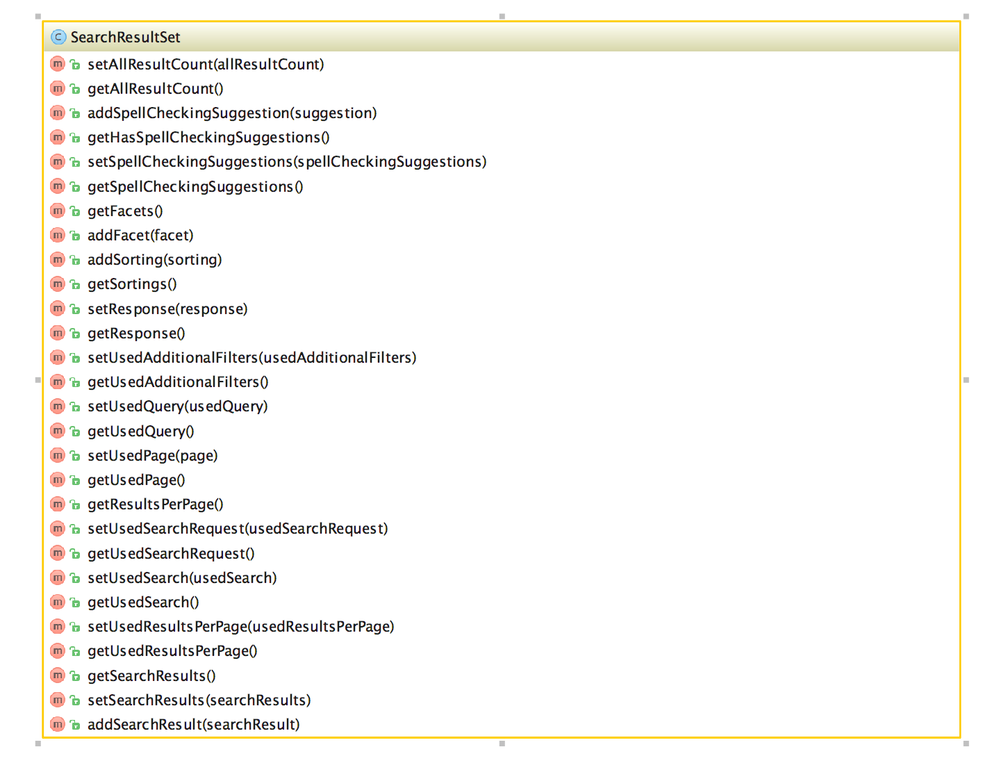 The SearchResultSet can be used e.g. to get facets and spelling suggestions. A focus for the first release was a new domain model for facets, that can be rendered with fluid or any other template engine.