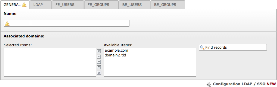 When creating a new record at the root of your website, choose “Configuration LDAP / SSO”.