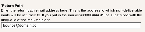 2. Use the Module Configuration function of the Direct mail module to configure this same address in the 'Return Path' field in Page TS Config: