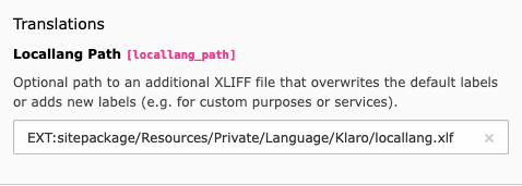 The easiest way is to reference your own locallang file directly via the Klaro configuration in the backend: