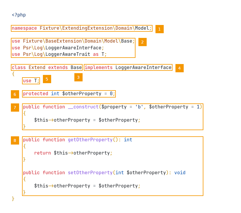 To cope with this and be able to add custom properties to a class the extender registers a custom spl class loader. This kicks in for every configured class and required a compiled class from the class cache.