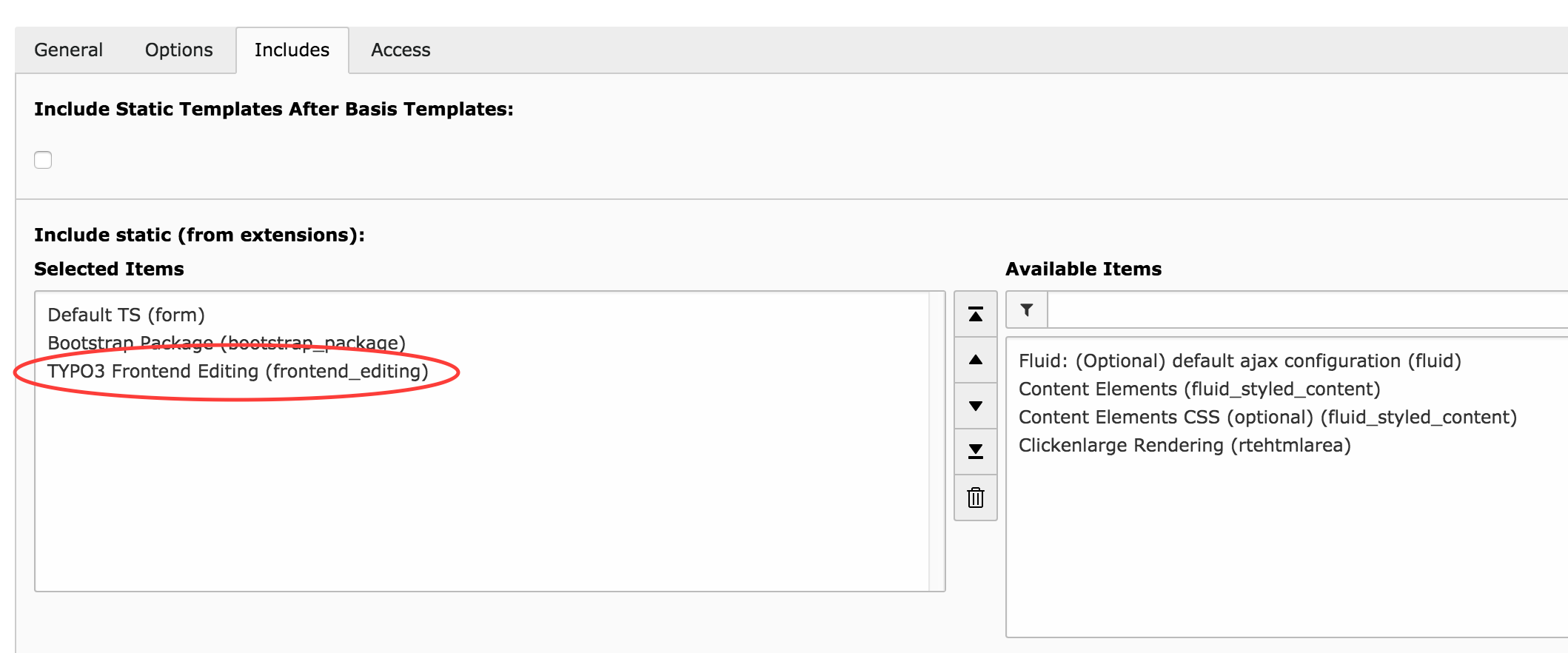 Add the static TypoScript template Frontend Editing to the site roots where the features should be activated