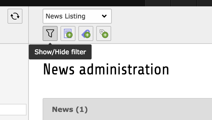 The link in the administration module to toggle the filter form has been moved to the toolbar.