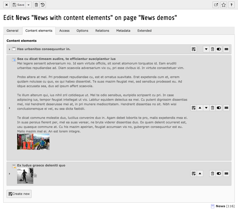 To improve the usability of content elements added to a news item, the preview in the backend is enhanced by rendering the content elements as in the page module.