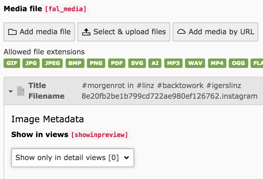 The well known checkbox Show in list views inside every FAL relation is changed to a dropdown to allow the following settings: