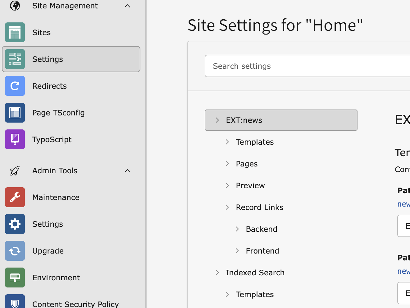 After saving, you can switch to the backend module Site Management > Settings to adopt the configurations.