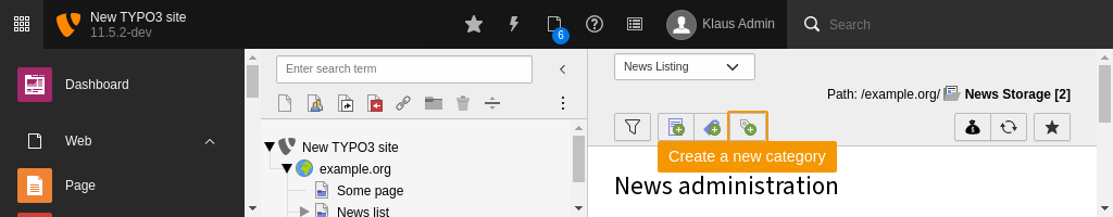 The News Administration module is a simple backend module that enables you to create, edit and search for news records. It can also be used to create categories or tags.