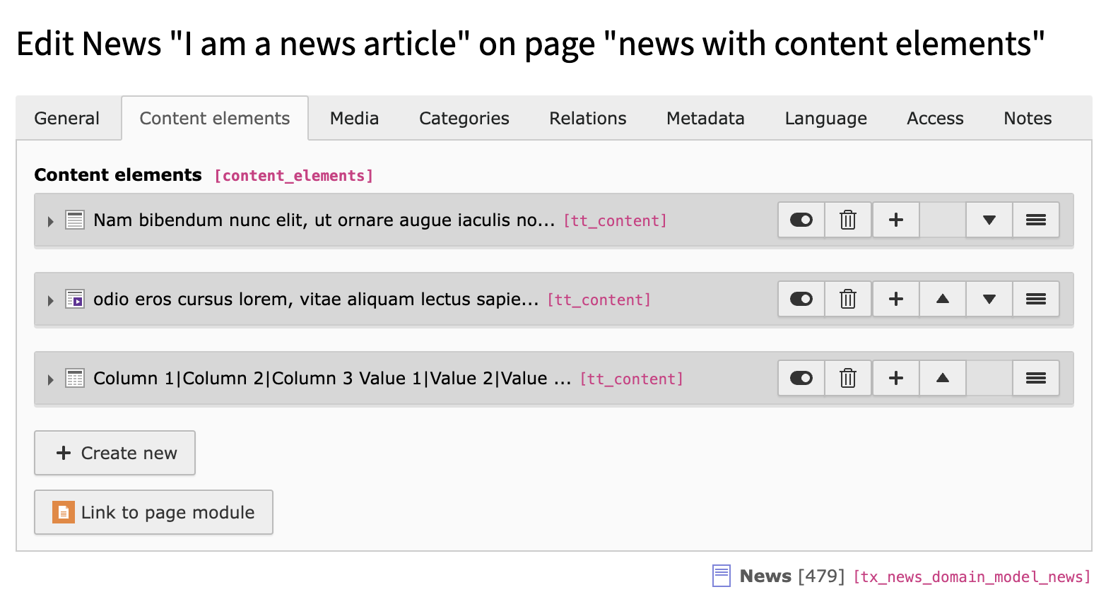 Extending a news record by additional content elements makes it possible to enrich an article by any content elements. The only drawback is that the management of those is kind of limited because of using the so called IRRE - inline record rendering type.