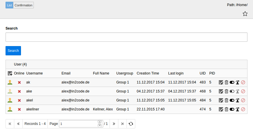 FE Users Record