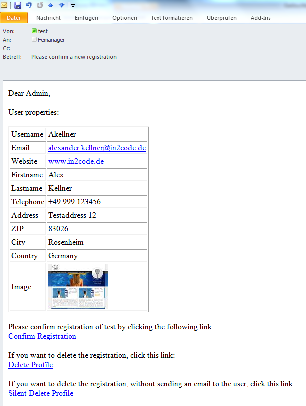 - User confirmation (Double-Opt In) (optional)