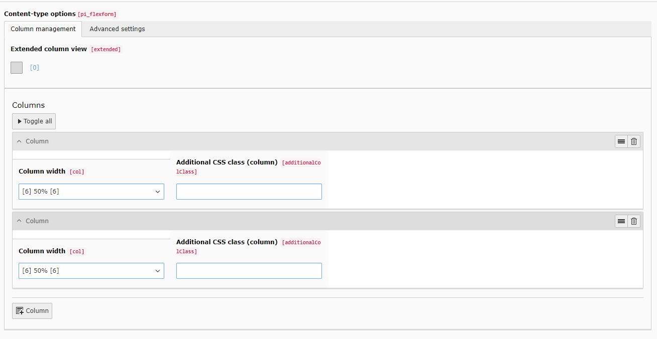 In basic view you can now choose the width of each column. For example two columns with 50% each.