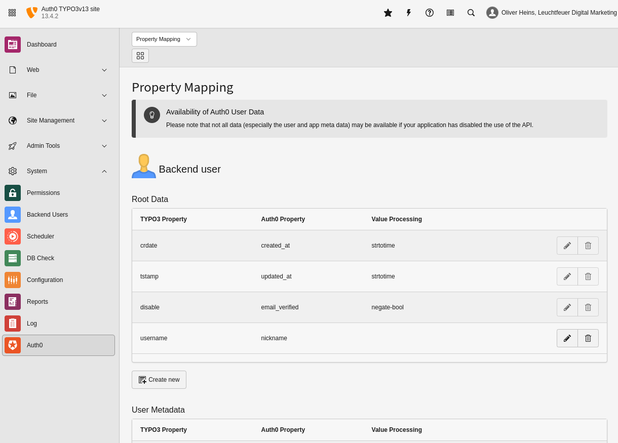 Auth0 properties can be mapped to existing properties of TYPO3 backend users. You can configure this mapping in this