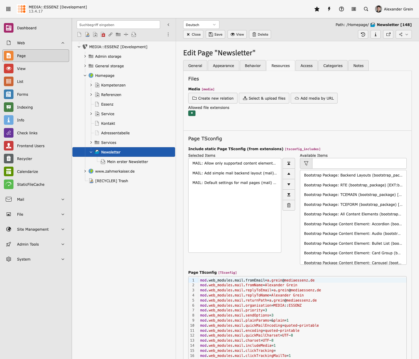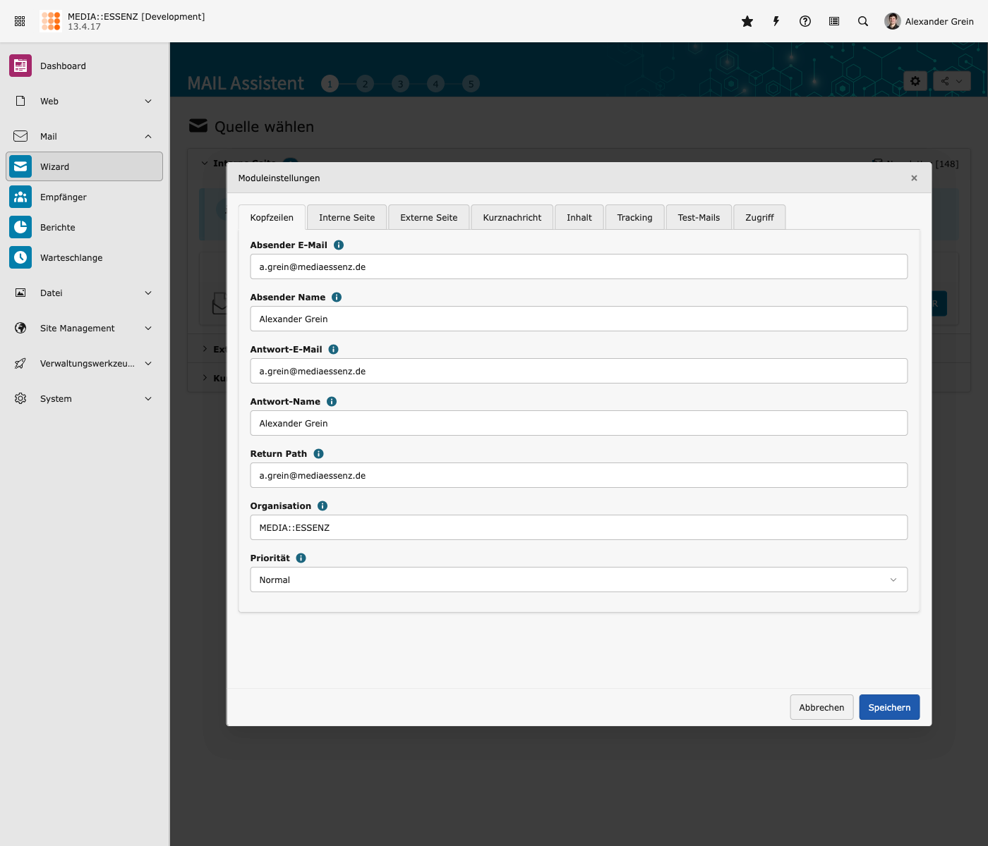 MAIL brings – similar to EXT:direct_mail – an easy way to adjust some default settings, used by the mail creation wizard.