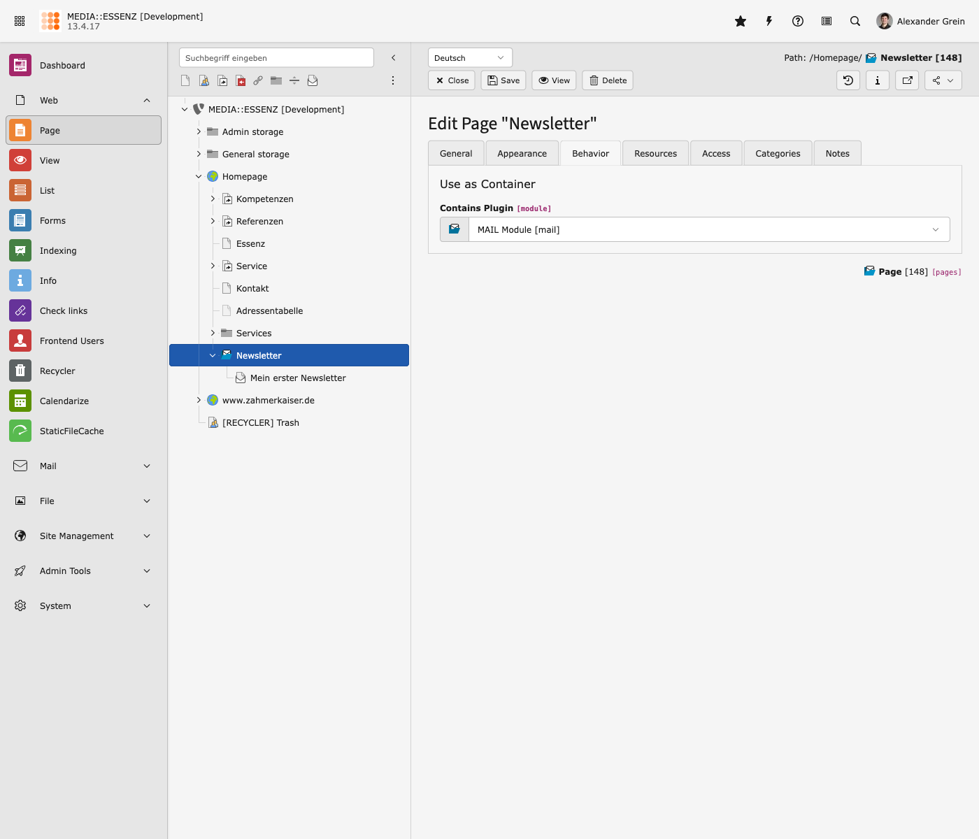 This site will be used to store the MAIL pages later. Remember the uid of this new page, you may need it in a later step.