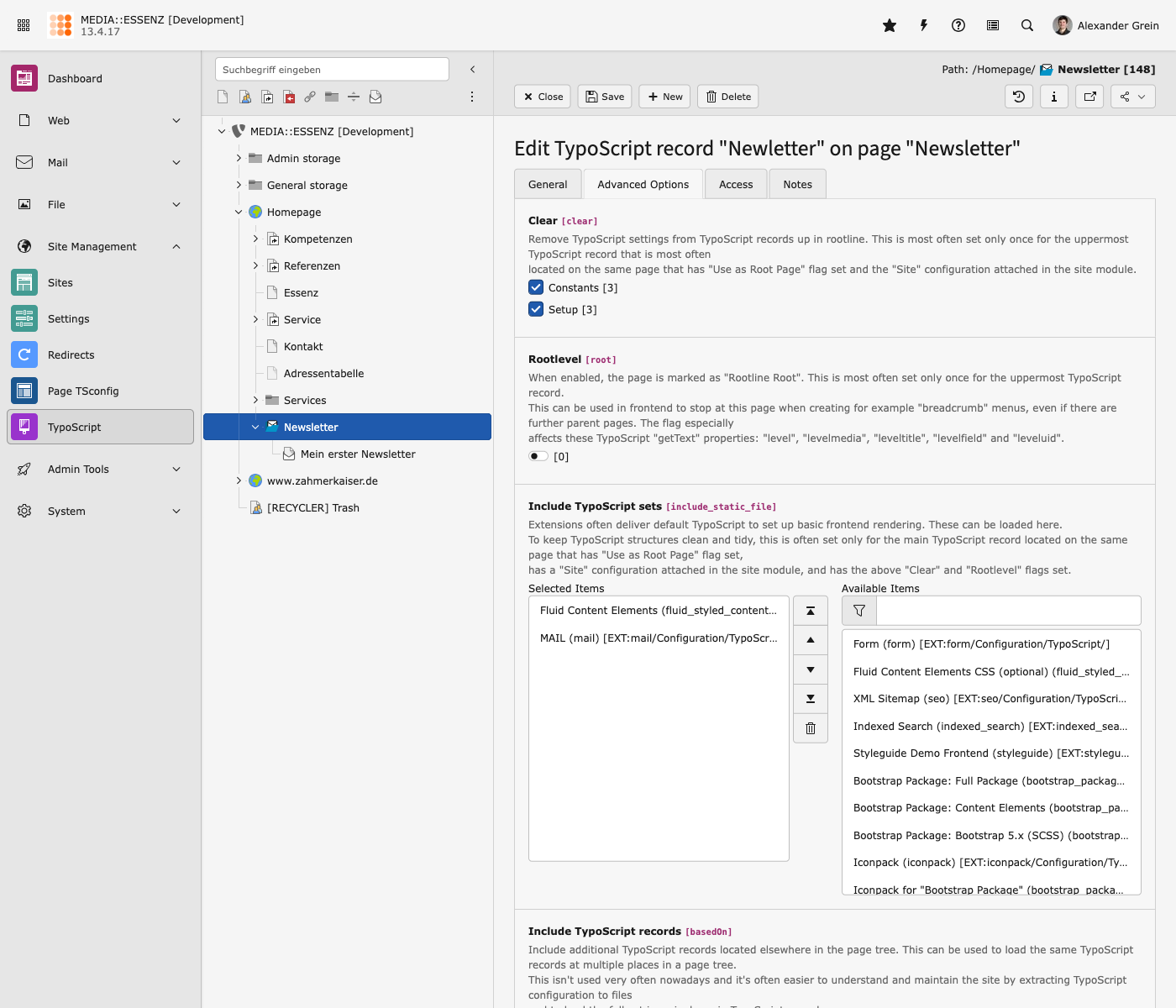 If you want to switch from the classic way to site sets way, aware that the root page of MAIL has be changed to a "real" site root. Additional do not forget to remove old TypoScript or TsConfig settings! And a classic: Clear ALL Caches after a change.