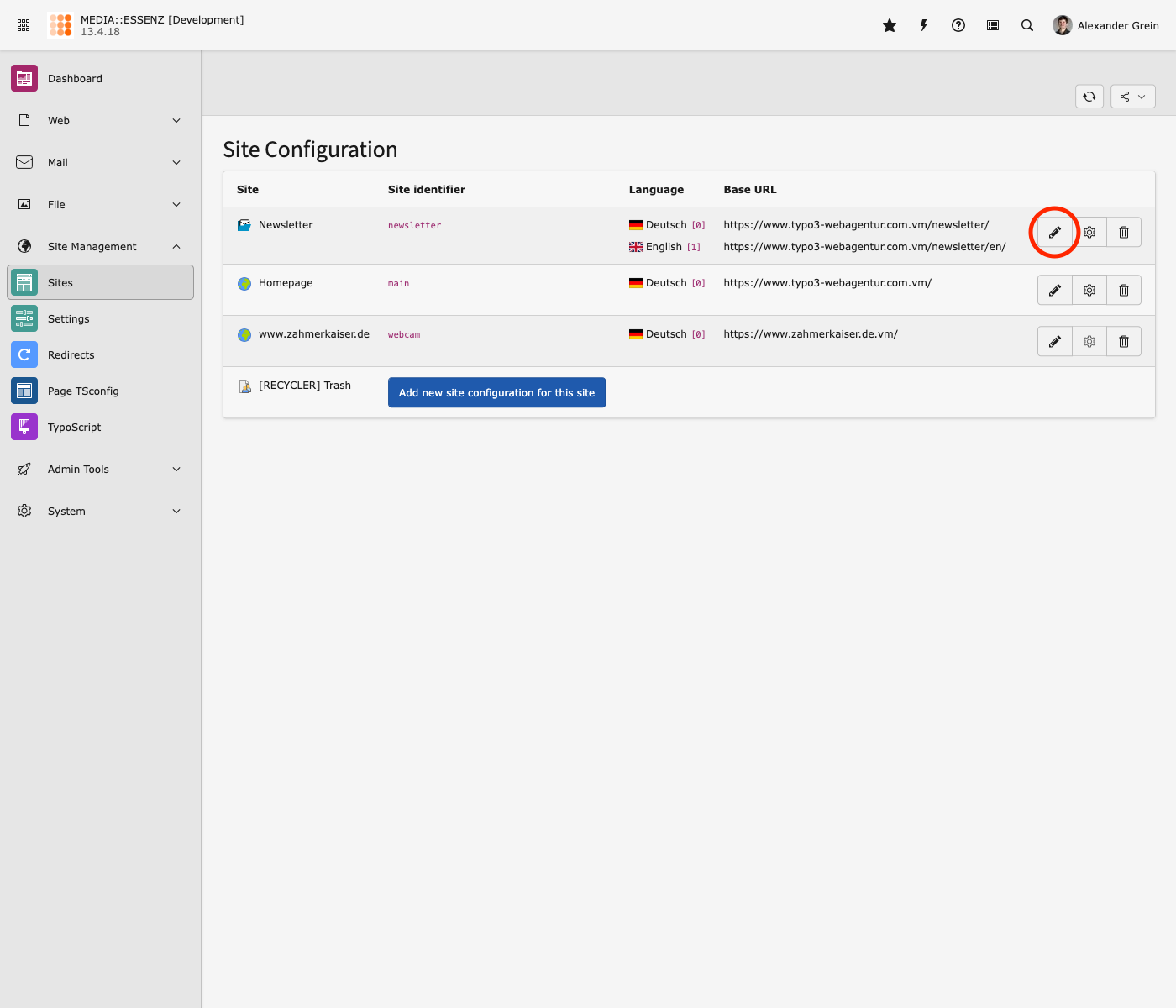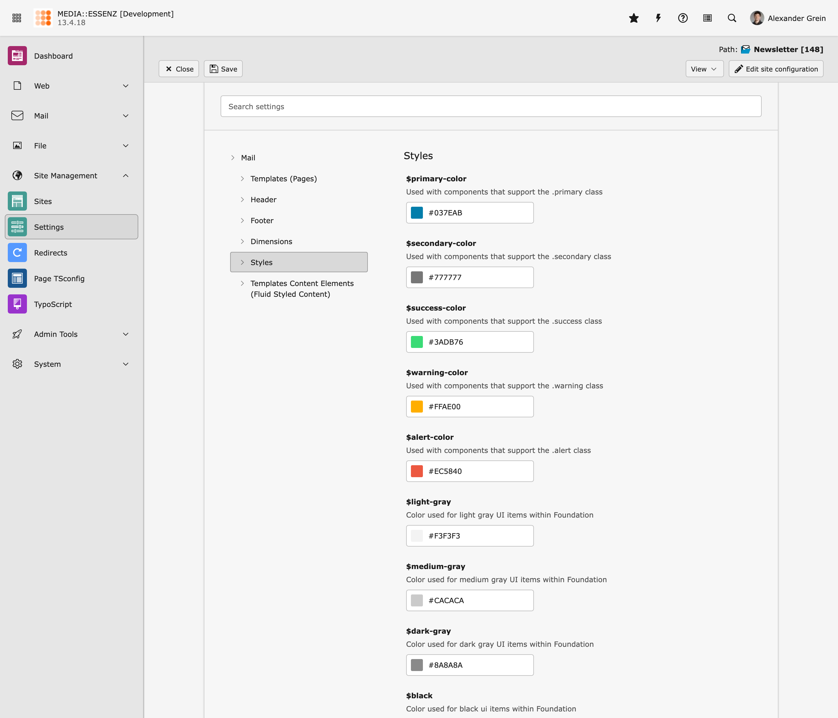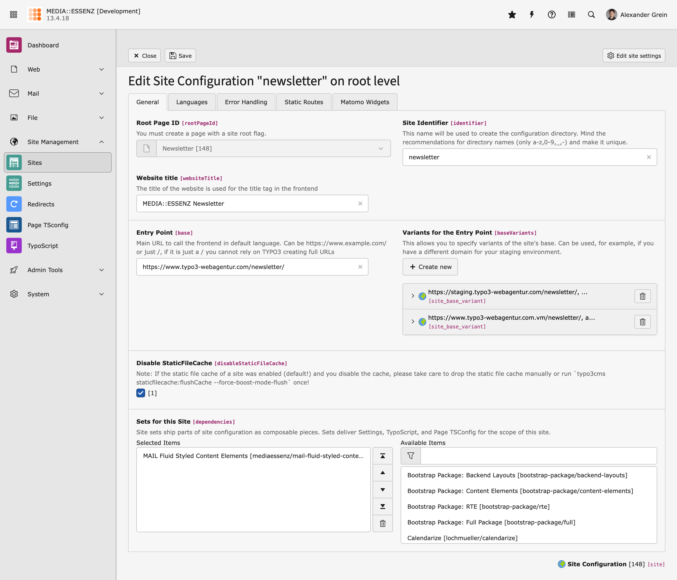 Under the General Tab you can find all relevant settings. First of all you have to enter a Site Identifier (eg. newsletter). Second, add an Entry Point. This must be a full domain! Relative domains like "/" will not work! Same for optionaly added Variants.