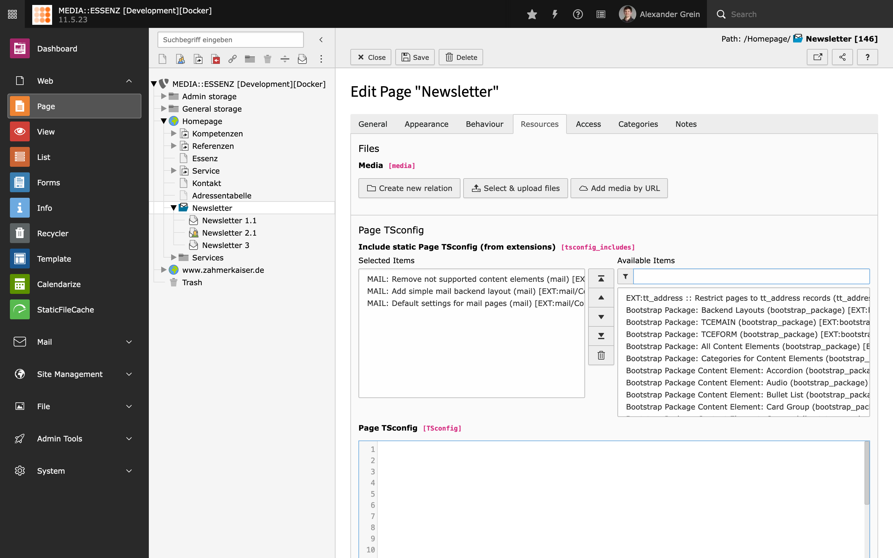 All configurations done here will be stored in the Page TSconfig field of the currently selected page. This way, it is possible to override settings in a deeper page tree level.