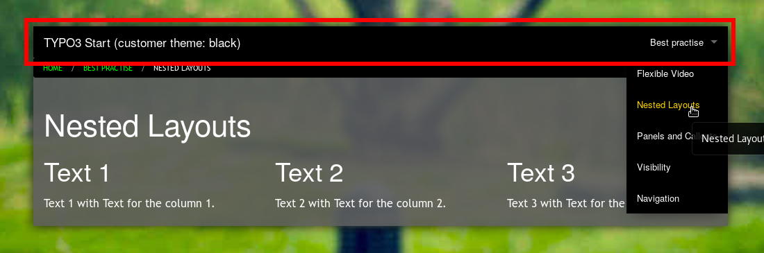 In the illustration above is selected the top bar - the main navigation.