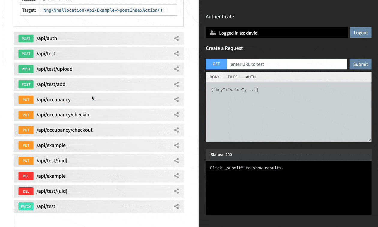While creating your own RestApi you don’t need to use external tools like Postman. All registered endpoints automatically get listed in the backend module. By clicking on the compose-icon you can create your custom request in the backend including Frontend-User authentication and file-uploading.