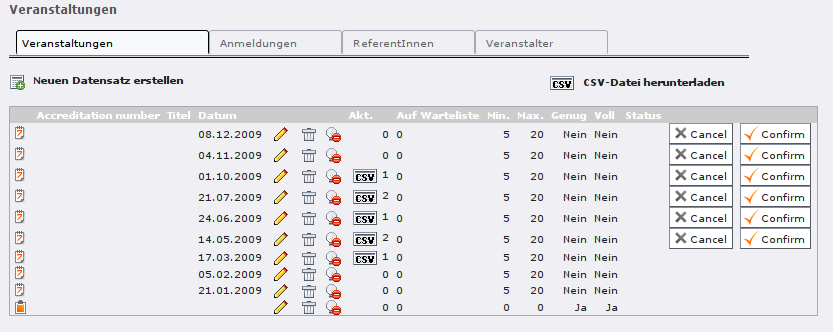 Dieses Modul bietet den komfortablen Zugriff auf Veranstaltungsdatensätze, Veranstalter, ReferentInnen und Anmeldungen.