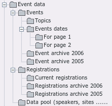 The following system folder structure is proposed for a full-blown installation with lots of events and different organizers that manage their registrations independently: