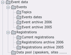 The following system folder structure is proposed for a full-blown installation with lots of events and different organizers that manage their registrations independently:img-9 Illustration 9: Full blown installation