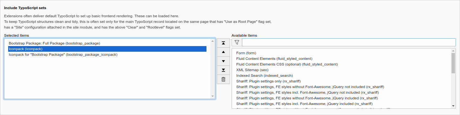 If you do not choose either of the methods above or want to make individual configurations, you will need to define a few things in TypoScript so that the icons can be displayed in the frontend: