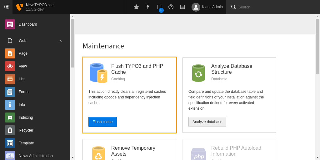 Open your TYPO3 backend with t3start:system-maintainer permissions.
