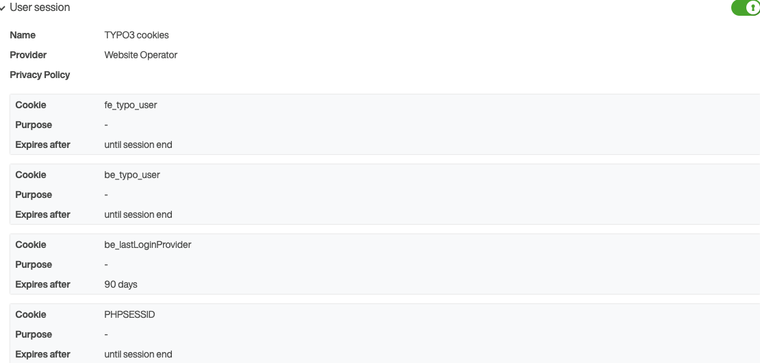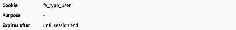 - The cookies that are initially set by default from the TYPO3 system or the EXT:supi