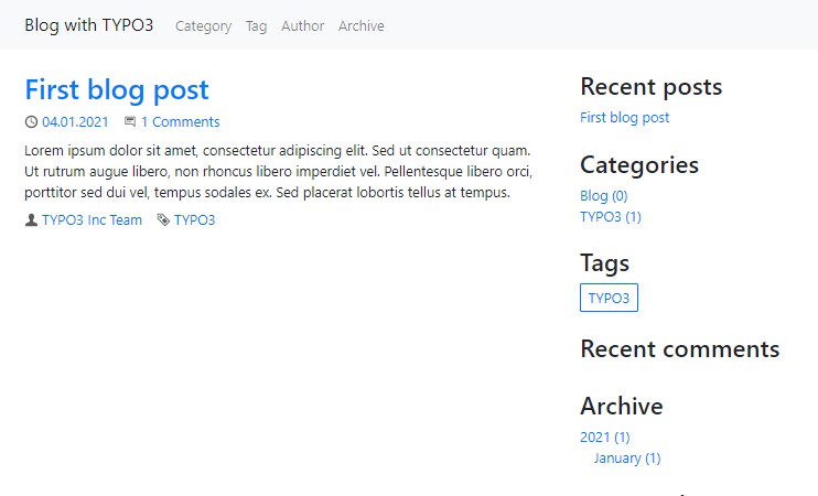The Setup Wizard creates a fully configured standalone instance of the TYPO3 Blog Extension. If you already have an existing site, you might dislike the result of having an additional and unplanned root page. In that case, please read the Manual Setup instructions.
