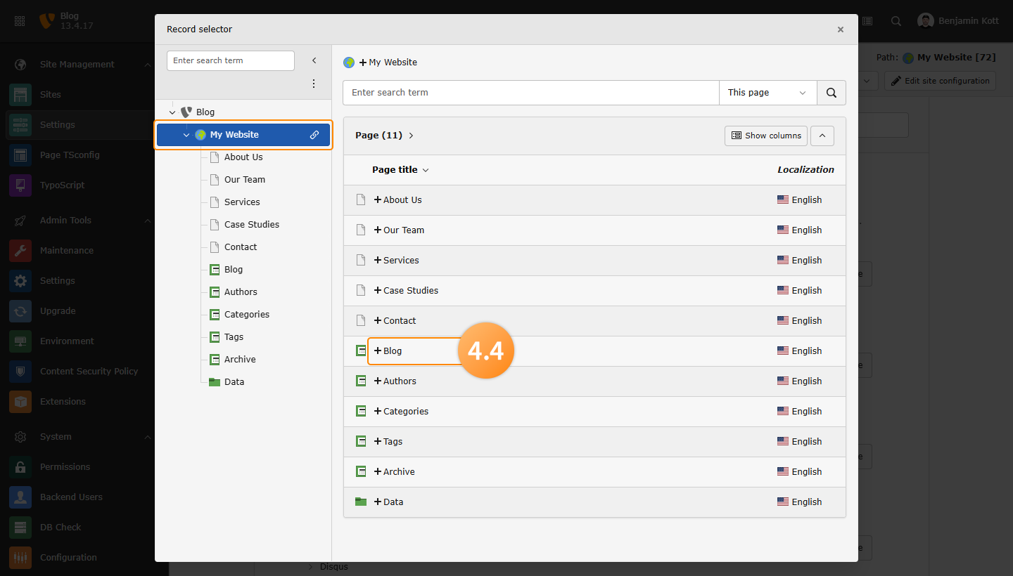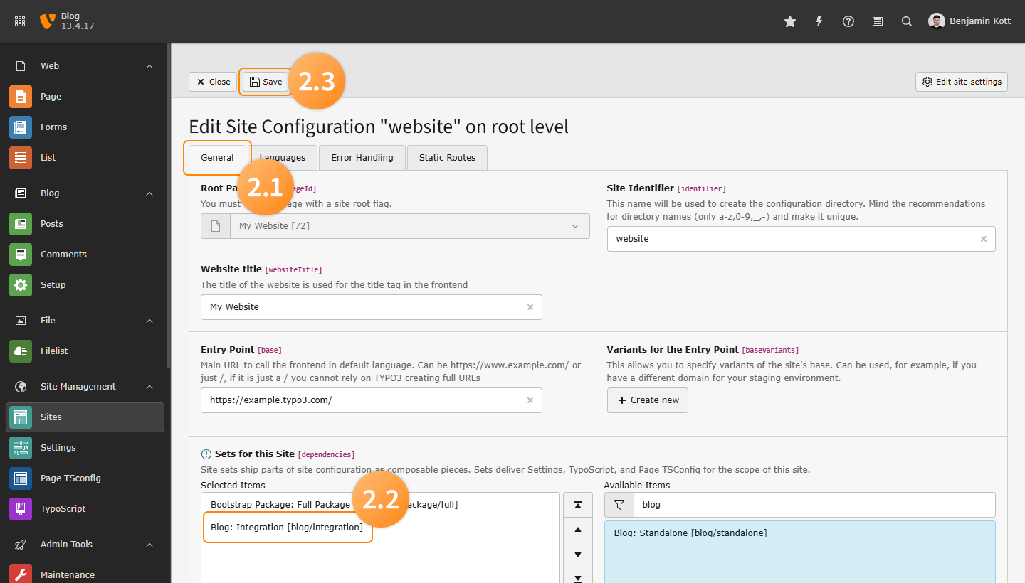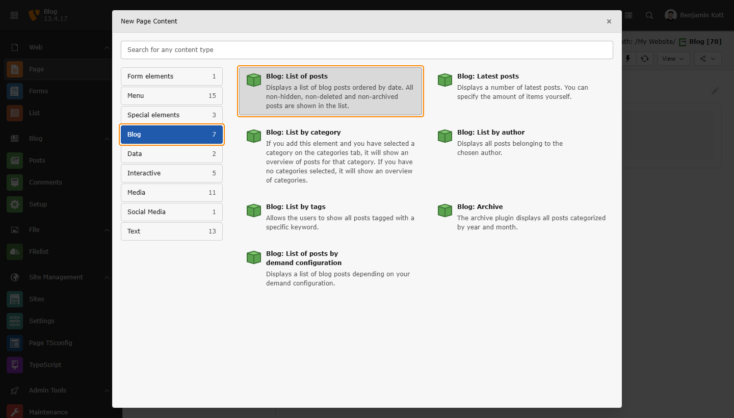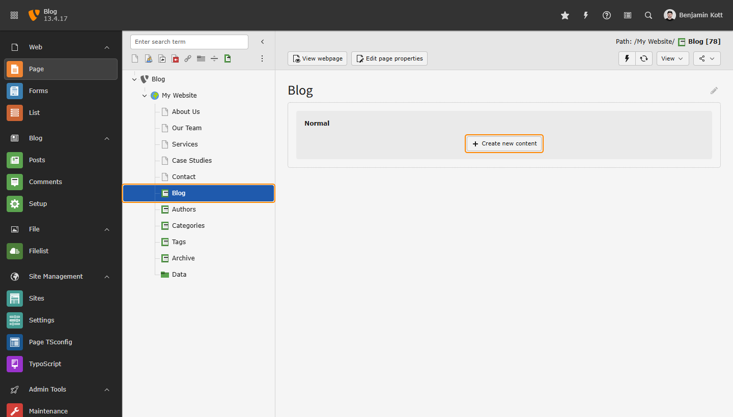 - Ensure the TYPO3 Blog Extension is installed and activated