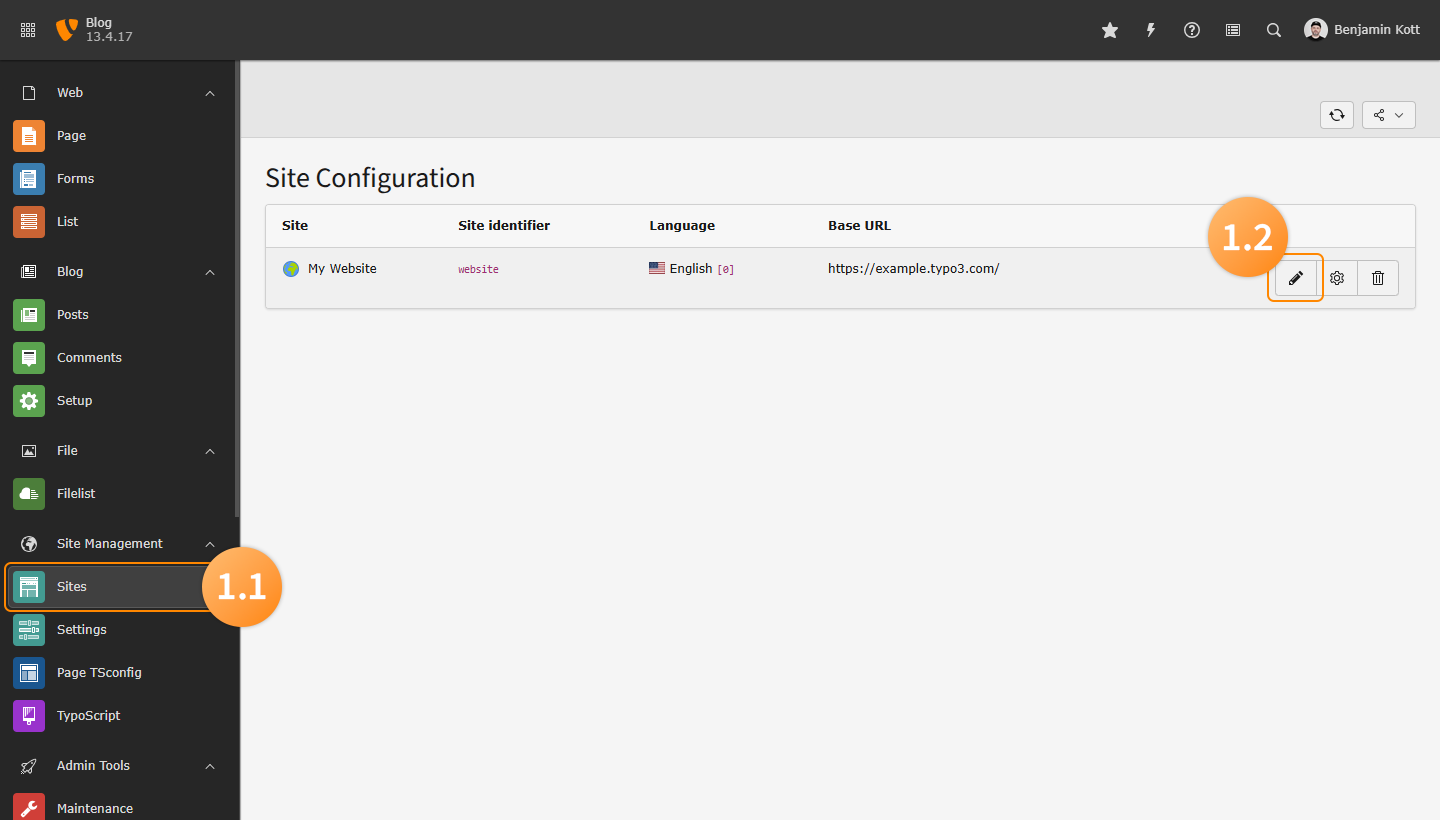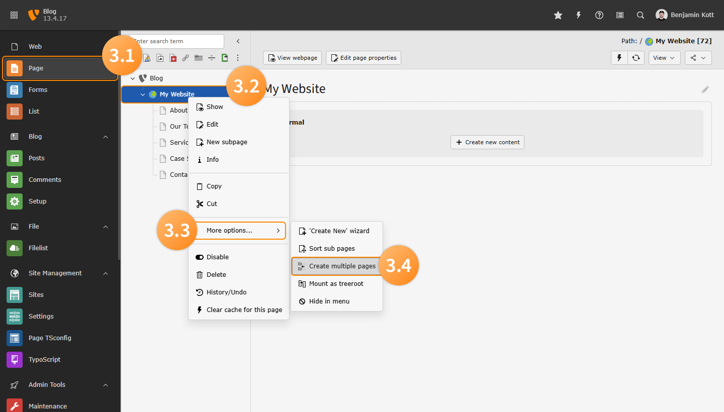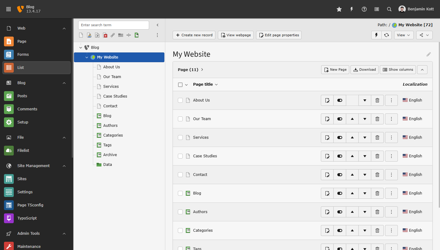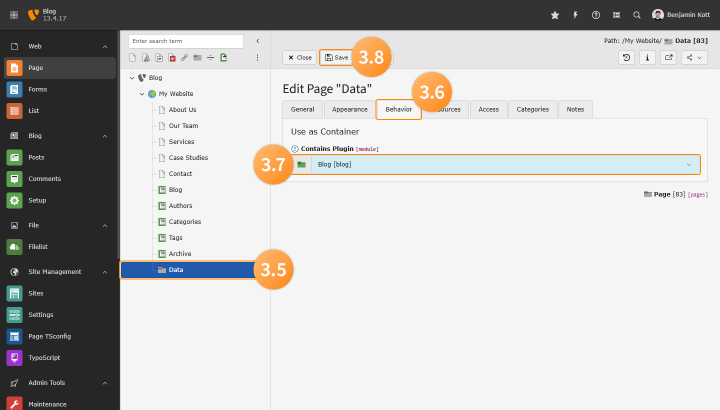 - Ensure the TYPO3 Blog Extension is installed and activated