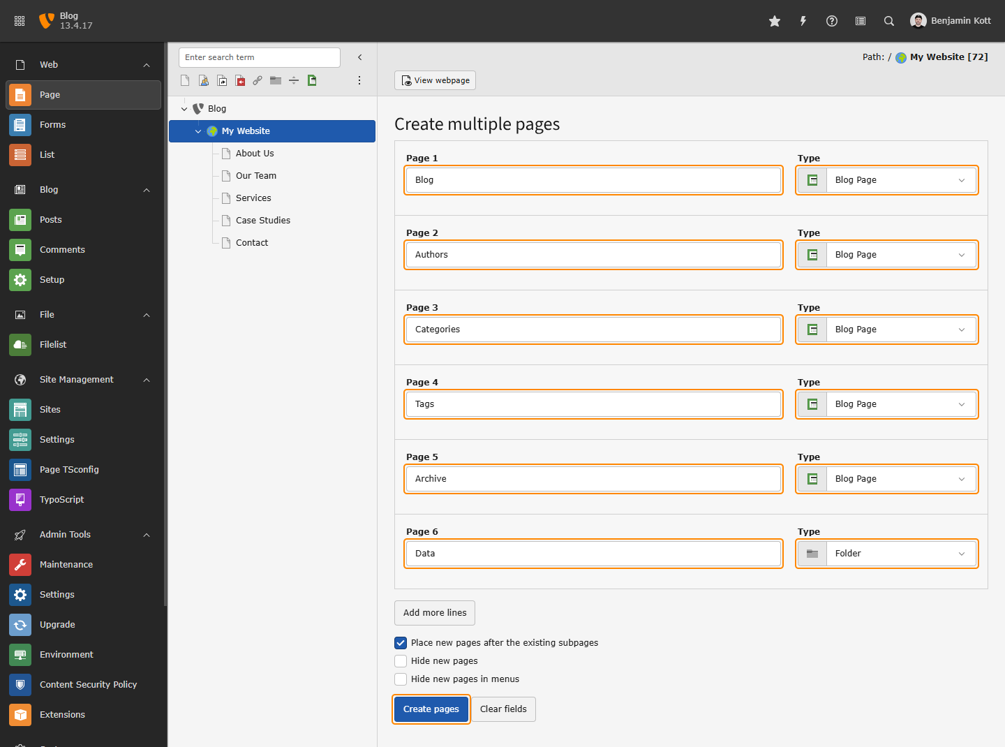 - Select "Create multiple pages"
