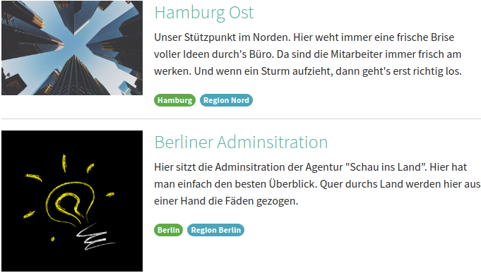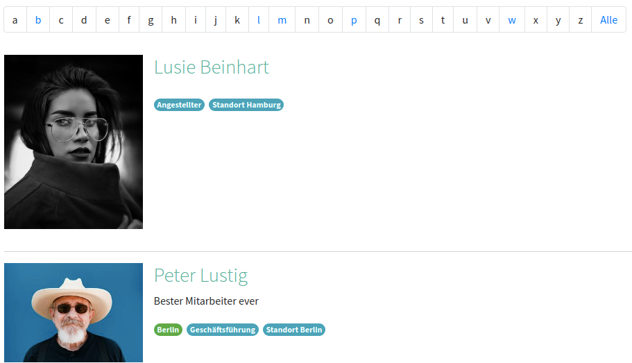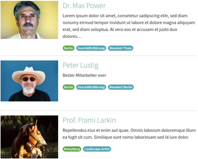 Screenshots List view with images of locations Map view with filters List view with images of persons A-Z list view with images of persons Edit profile for TYPO3 frontend users Edit location in TYPO3 backend